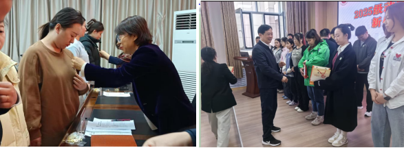 各办学单位相关领导分别在开学典礼上做了讲话,介绍了各自办学的特色和优势等,为新生确立学习目标、适应学习环境提供了重要信息,勉励新生以专业为基,孜孜以求,探索未知,勇于创新实践,学以致用,不断追求卓越。各办学单位教师代表、新老生代表分别围绕课程体系、考核要求、自身学习经历和学习计划做了发言。最后,老师们为新生代表佩戴校徽。